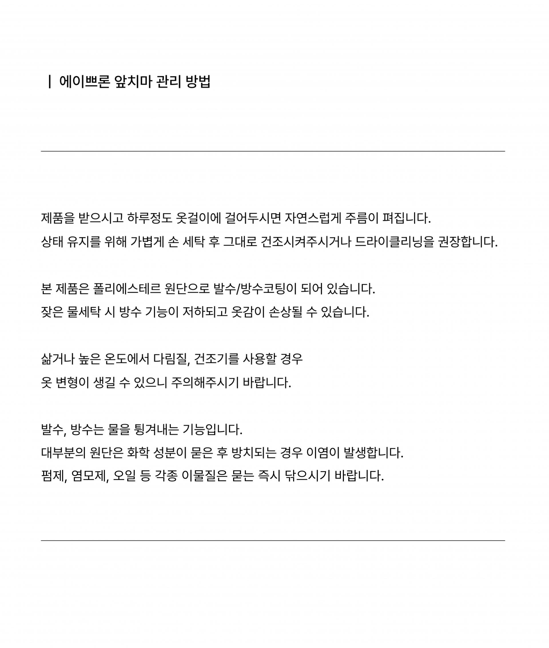 앞치마 5개 이상 주문시 각인 유료서비스 신청 가능하며 각인 비용은 별도입니다.
