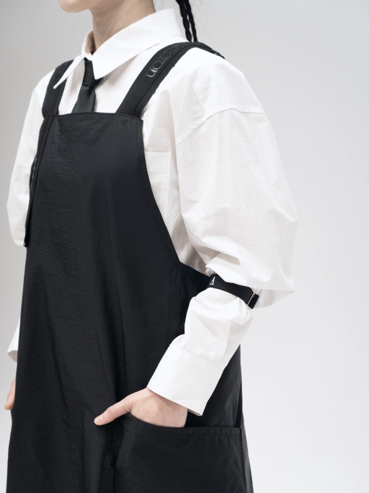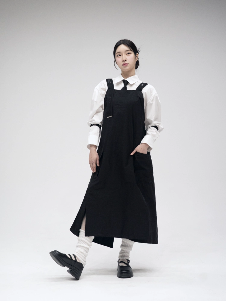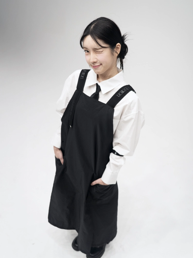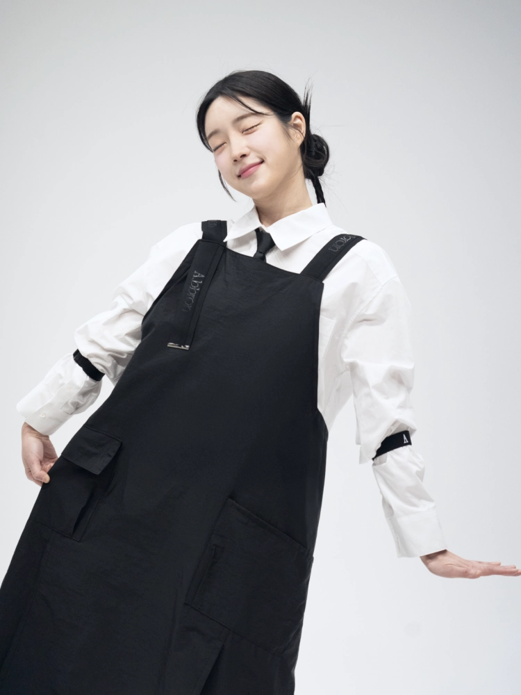 숄더 디테일이 들어간 봄 신상 이븐언밸 앞치마가 출시되었습니다.